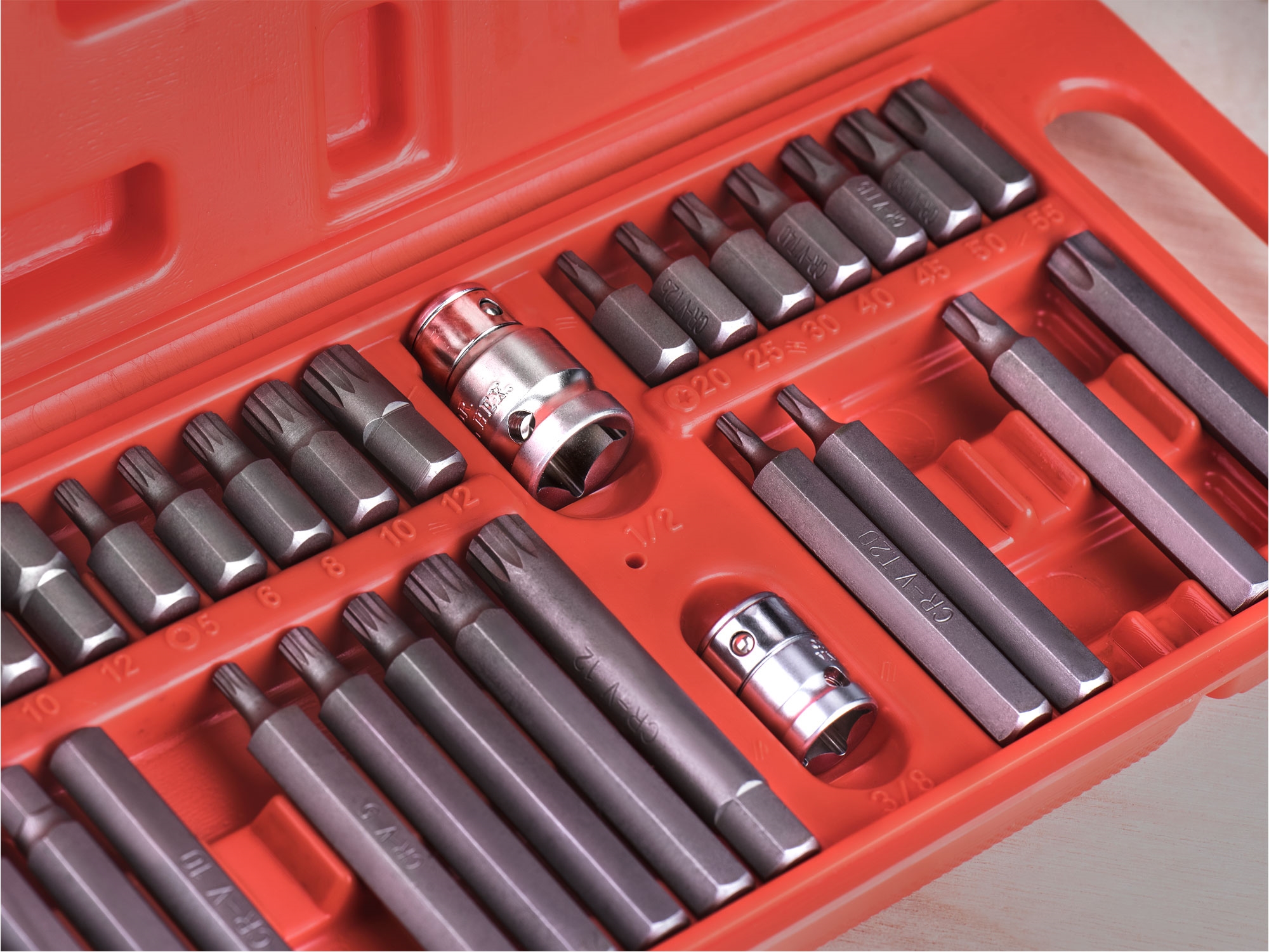 hlavice zástrčné: hroty zástrčné 10mm(L30mm):T20-25-30-40-45-50-55, H4-5-6-7-8-10-12mm, XZN5-6-8-10-12