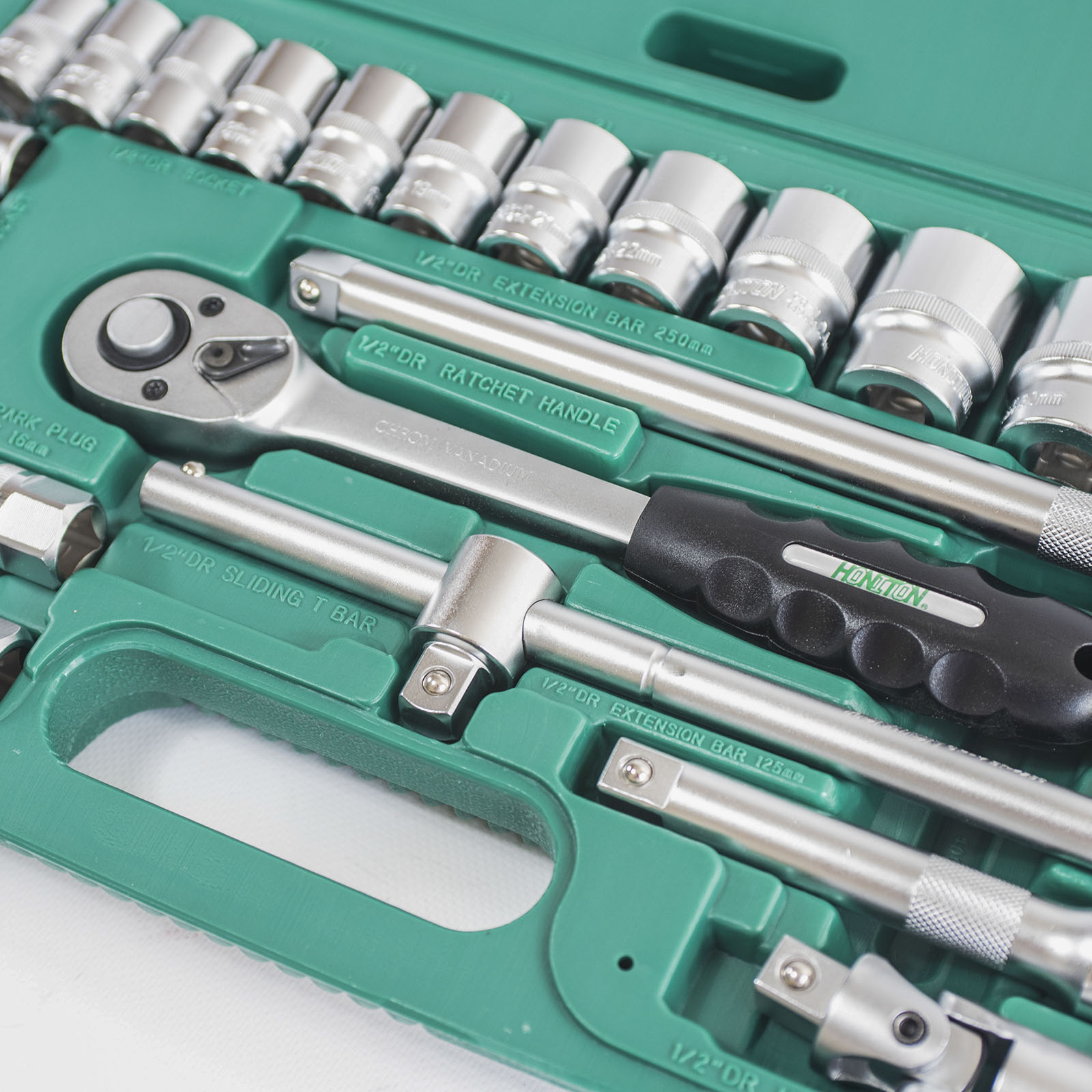 Gola sada Honiton 1/2″ se 25 díly je navržena pro nejtěžší úkoly v autoservisech, dílnách i při údržbě zemědělské techniky. Tento systém využívá robustní 1/2″ pohon, který je ideální pro přenos vysokých krouticích momentů. Všechny součásti jsou vyrobeny z houževnaté chrom-vanadiové oceli, která prošla přísným testováním a splňuje průmyslovou normu DIN 3124. Sada obsahuje vše potřebné pro kompletní servis podvozkových částí, kol i motorů, včetně dvou rozměrů svíčkových klíčů a prodloužení pro práci v hlubokých prostorech.