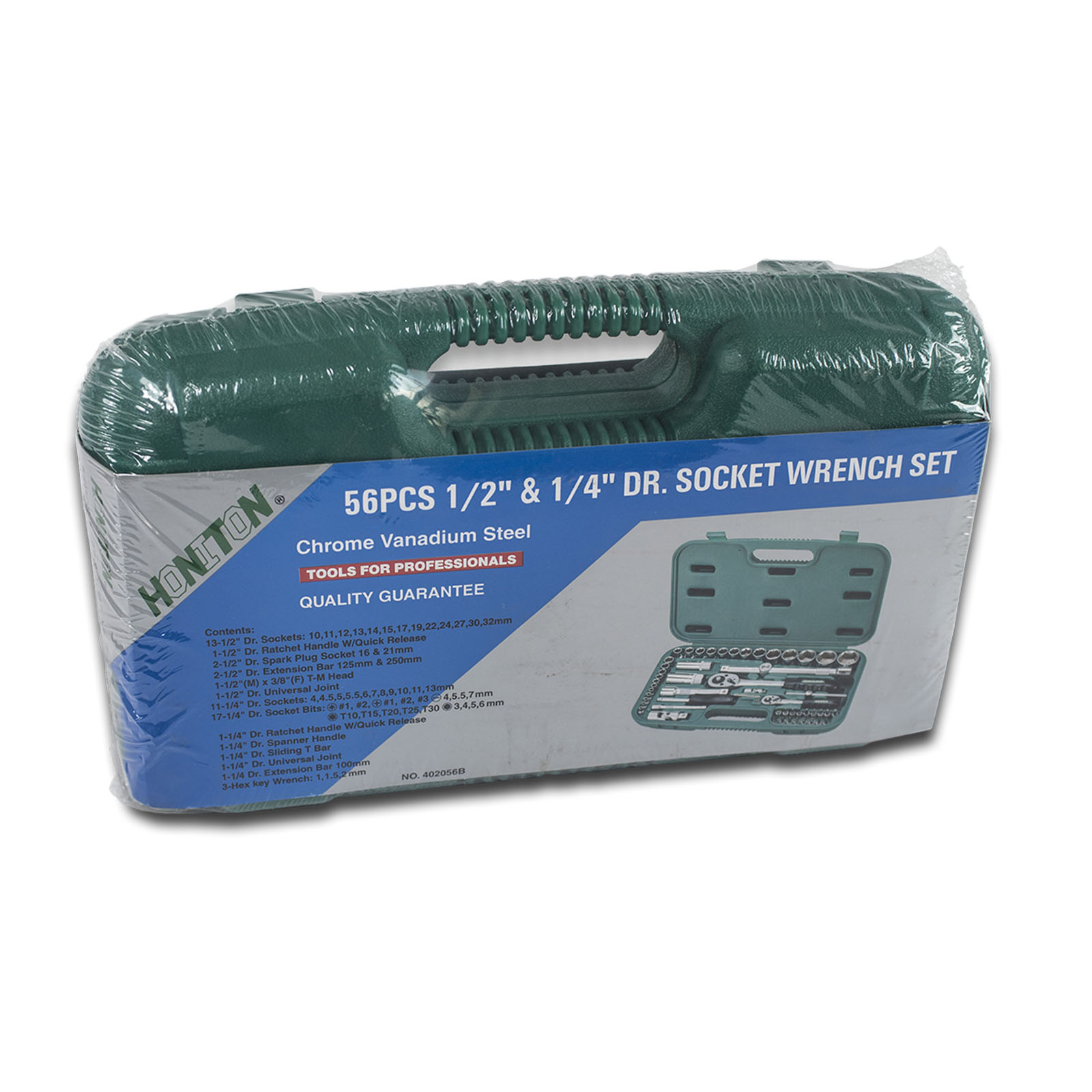 Gola sada Honiton 1/4″ a 1/2″ se 56 díly představuje racionální volbu pro ty, kteří chtějí mít vše podstatné a netahat přitom zbytečně těžký kufr. Inteligentní výběr ořechů pokrývá metrickou řadu od jemných 4 mm až po matice náprav o rozměru 32 mm. Hlavní devizou jsou 36zubé ráčny, které jsou v profesionálních kruzích ceněny pro svou mechanickou odolnost a schopnost přenášet vysoké momenty bez prokluzu. Celá sada je vyrobena z houževnaté CrV oceli s matnou povrchovou úpravou, která nejen skvěle vypadá, ale především zajišťuje jistý úchop i v mastných rukou.