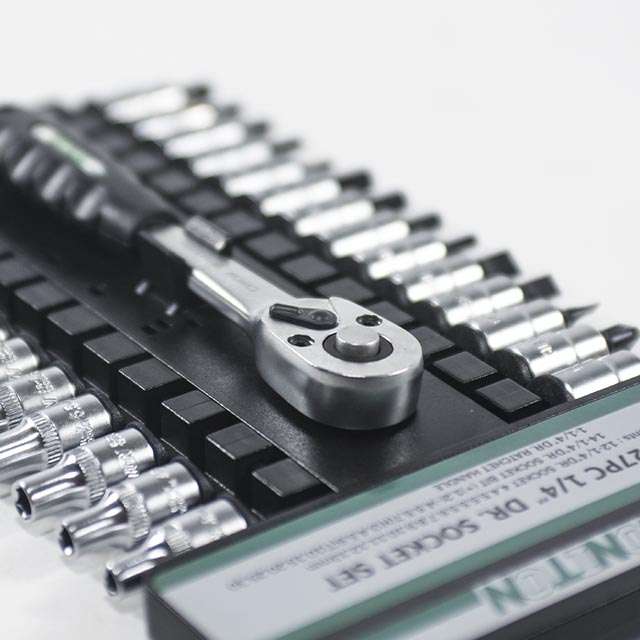 Gola sada Honiton 1/4″ se 27 díly je navržena pro maximální efektivitu v minimálním prostoru. Na rozdíl od velkých kufrů, kde bity často vypadávají, sází Honiton na systém zástrčných hlavic – bity jsou pevnou součástí ořechu, což eliminuje vůli a riziko ztráty drobného hrotu v útrobách stroje. S upínacím čtyřhranem 1/4″ a silovou 36zubou ráčnou získáte nástroj s obrovskou tuhostí, který je ideální pro povolování zarezlých šroubků v interiérech aut, u čidel nebo v jemné mechanice. Celá sestava je přehledně nacvaknuta na plastové liště, kterou můžete snadno vložit do šuplíku ponku nebo zavěsit na zeď.