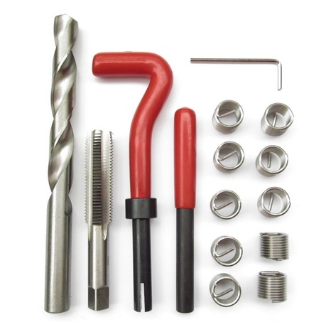 Praktická souprava pro snadnou opravu poškozených závitů M14×1,25. Využití najde všude tam, kde nelze vyřezat nový větší závit – opravený závit má stejnou velikost, jako ten původní. Díky tomu, že závitová vložka je z oceli lze sadu využít také pro zpevnění (vyztužení) závitů v jinak měkčích materiálech, jako je hliník nebo některé slitiny.