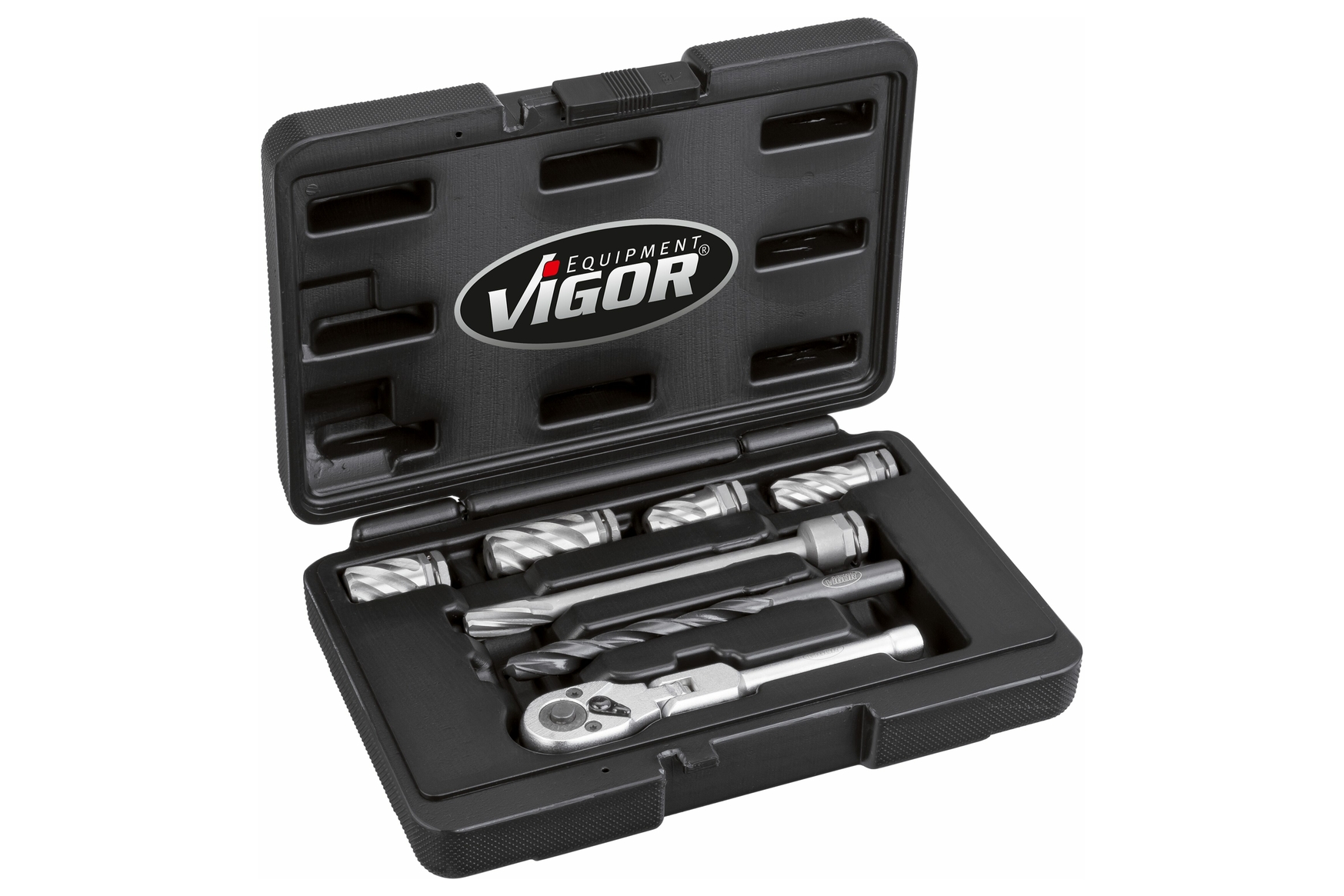 Obsahuje ráčnu, 5 výstružníků a spirálový vrták.
