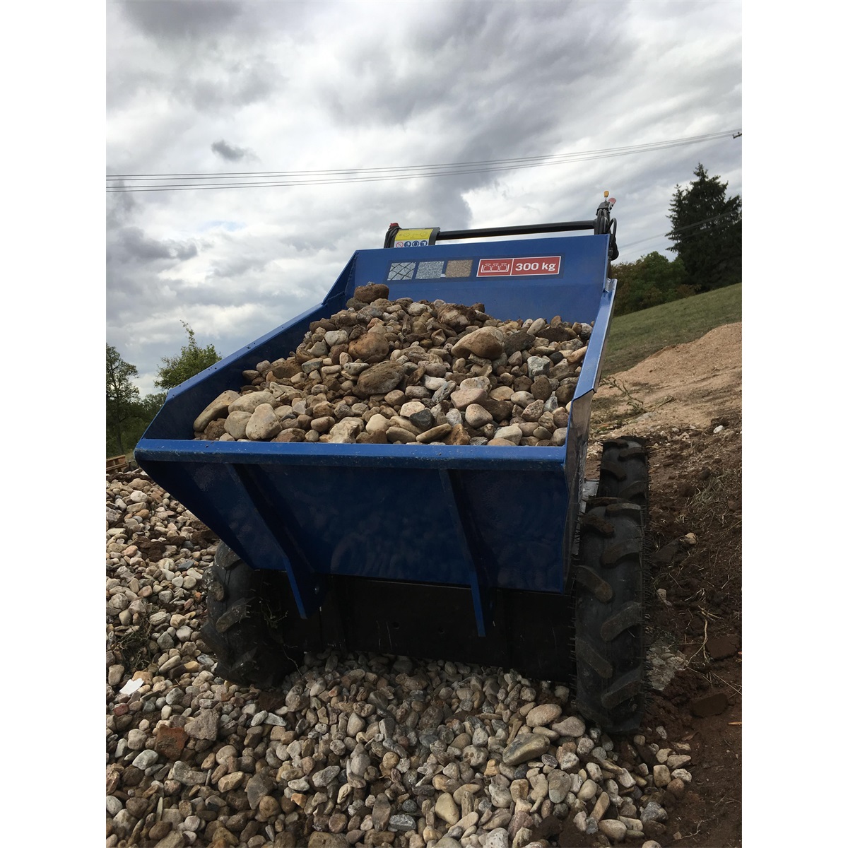 - Vysoká nosnost až 300 kg pro efektivní přepravu široké škály materiálů (zemina, písek, štěrk, kameny, dlažba, cihly, dřevo, tráva atd.).