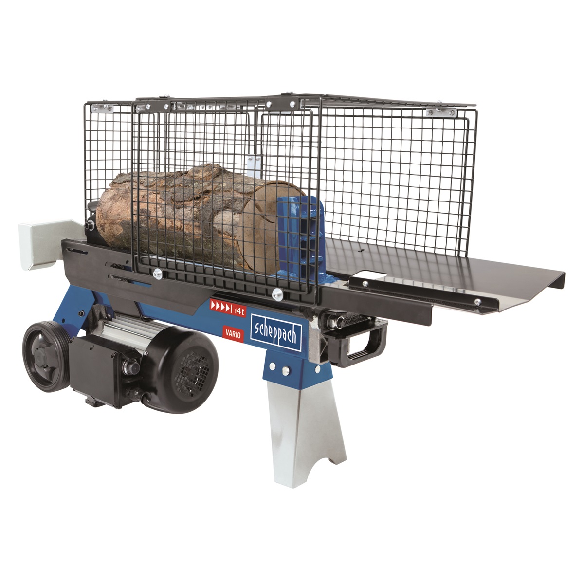 - Bezpečná obsluha zajištěná odnímatelnou ochrannou klecí, pojistkou uvolnění polena a dvouručním ovládáním.