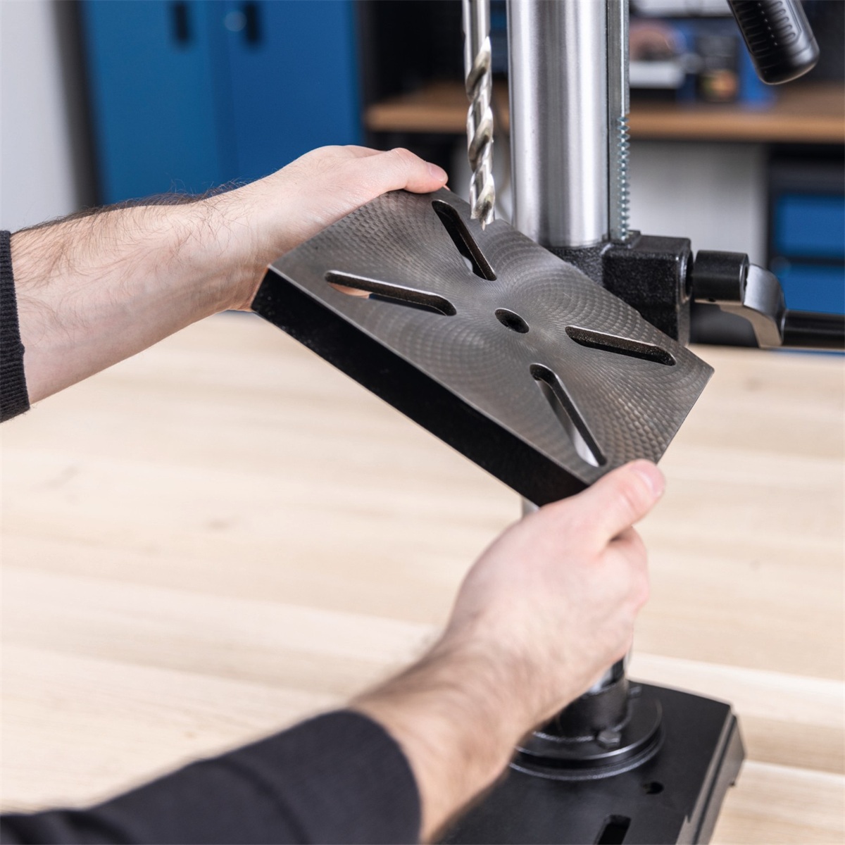 S výškou 87 cm se vrtačka pohodlně vejde na každý pracovní ponk.