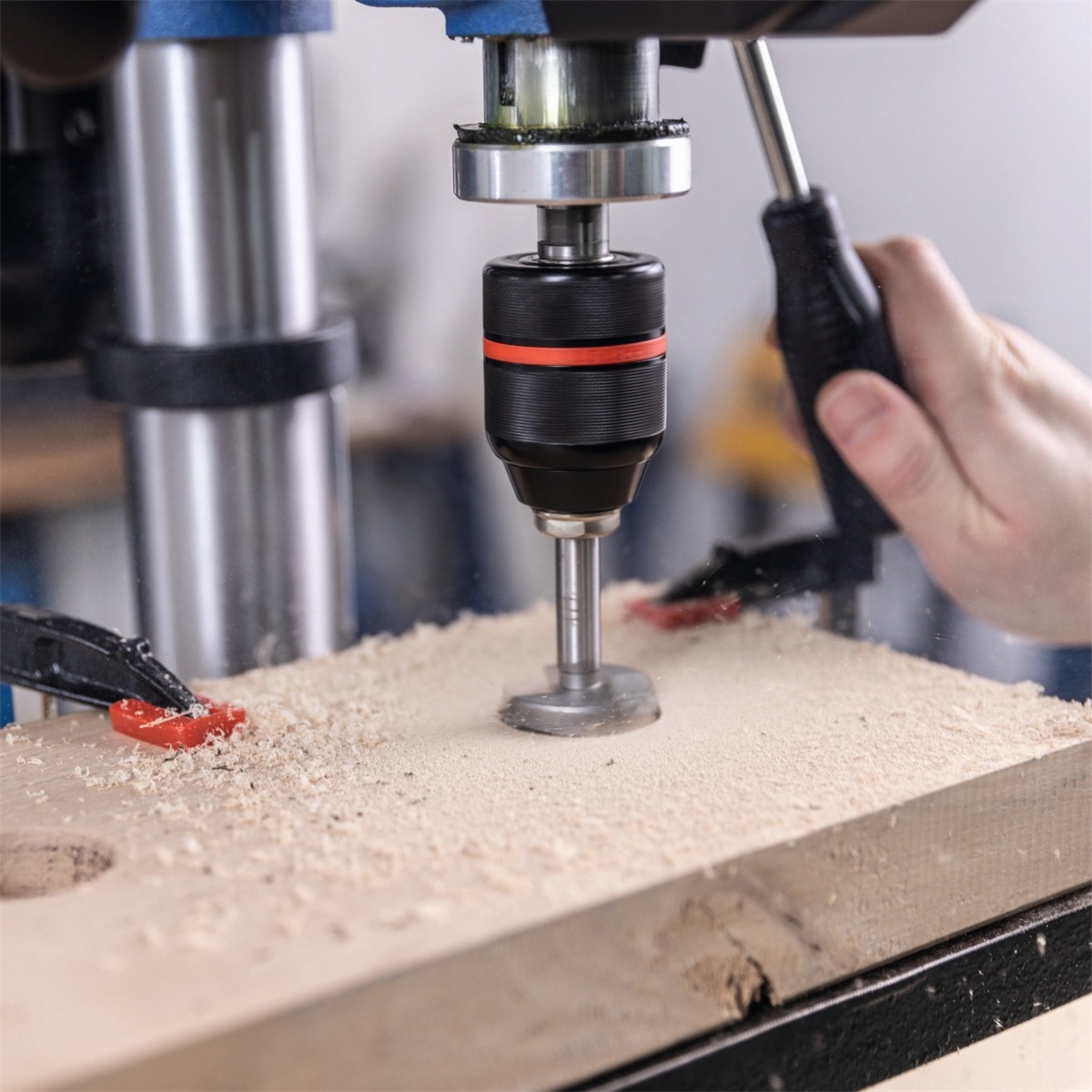 Nastavitelný doraz zajistí, že při sériovém vrtání budou všechny otvory stejně hluboké.
