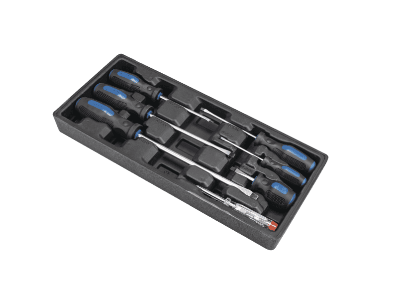 Modul 8: Izolované elektrikářské šroubováky (6 ks: (-) 3×75, 4×100, 5,5×125; (+) PH0x75, PH1x100, PH2x100)