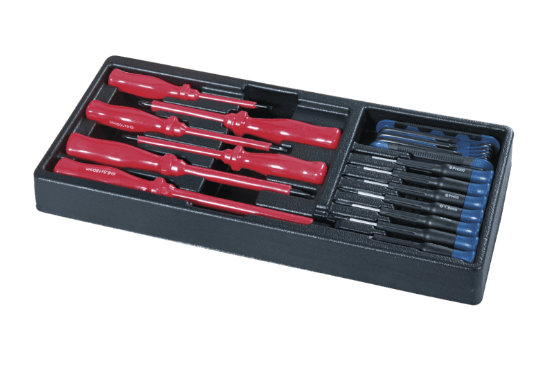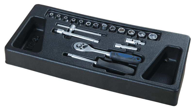 - Nářadí uloženo v pěnových modulech – každý kus má své přesné místo.