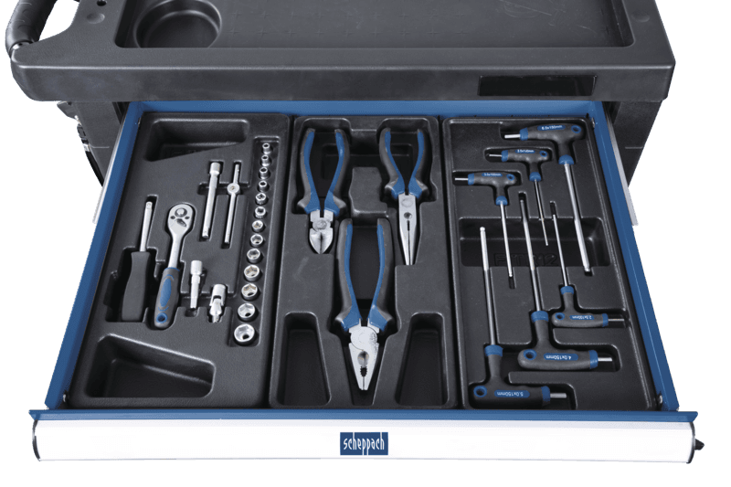 Vybavený montážní vozík Scheppach TW 1000 je ideálním řešením pro profesionální autoservisy, řemeslné dílny, výrobní provozy, ale i pro náročné kutily a majitele garáží, kteří vyžadují dokonalou organizaci, mobilitu a okamžitou dostupnost široké škály nářadí. Díky robustní konstrukci a vysoké nosnosti snese i náročné dílenské podmínky. Čtyři plně vybavené zásuvky pokrývají většinu běžných mechanických a údržbářských prací, zatímco tři volné zásuvky poskytují prostor pro specializované nástroje nebo další vybavení. Perforované bočnice umožňují další rozšíření úložných kapacit. Je to komplexní mobilní pracovní stanice, která šetří čas a zvyšuje efektivitu práce.