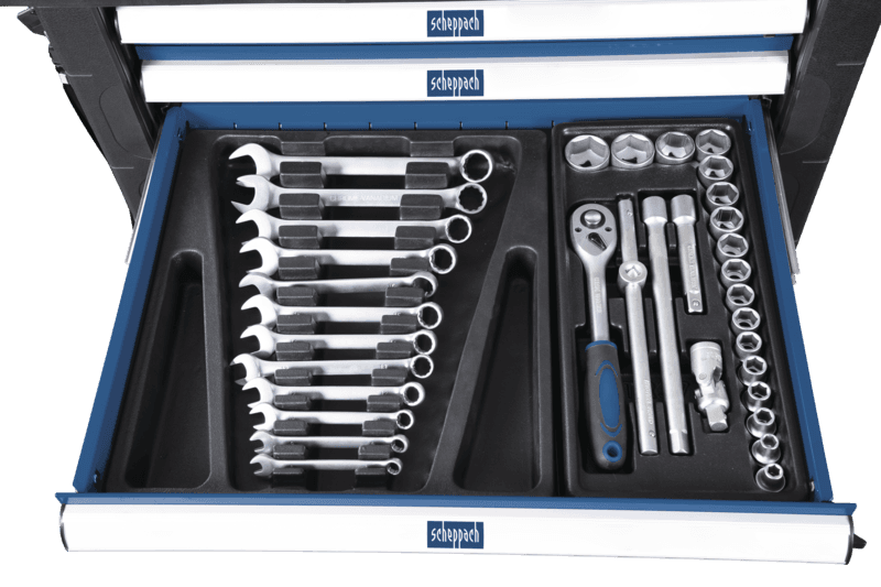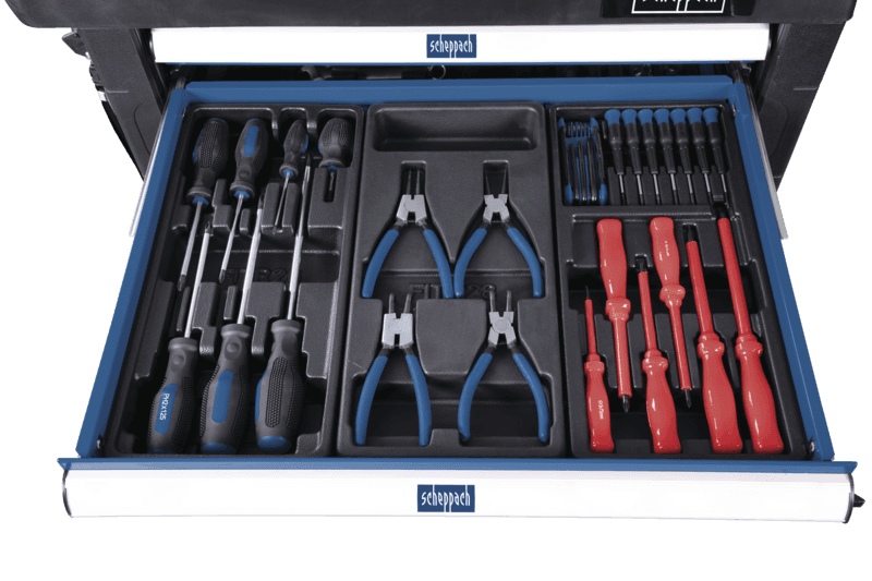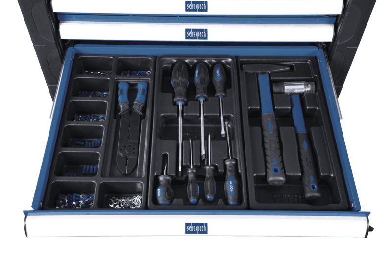 - Čtyři ze sedmi zásuvek kompletně vybaveny širokou škálou kvalitního nářadí (celkem 13 modulů).