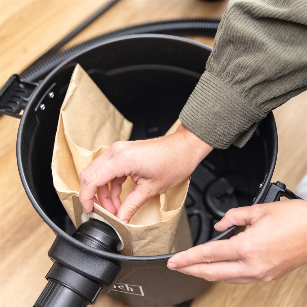 Při mokrém vysávání (sání tekutin) se sáček nepoužívá a nasazuje se pouze pěnový filtr. Pro suché vysávání jemného prachu a nečistot však doporučujeme papírový sáček vždy používat, abyste chránili motor a zajistili maximální filtraci.