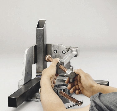 Kovová úhlová svěrka v provedení se třemi osami.