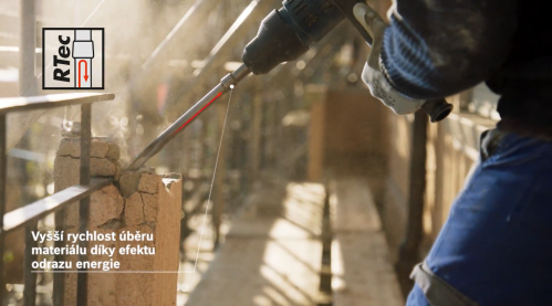 - Patentovaný prvek RTec umožňuje vyšší rychlost ubírání materiálu ve srovnání se standardními špičatými sekáči.