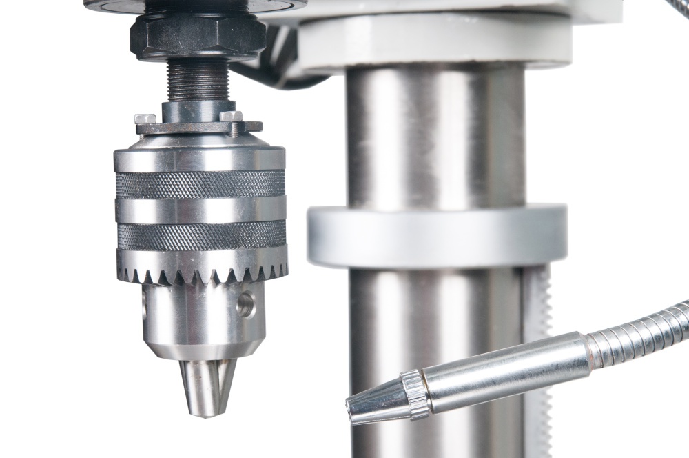 Tento model stolní vrtačky je speciálně konstruován pro profesionální obrábění kovových i nekovových dílců v podmínkách sériové produkce. Díky robustní konstrukci a šestipólovému motoru o výkonu 1500 W stroj vykazuje minimální vibrace a vysokou stabilitu. Klíčovou předností je variabilní automatický posuv pinoly a systém pro snadné přepínání mezi režimy vrtání a závitování. Přesnost práce garantuje broušený pracovní stůl a vřeteno s házivostí pod 0,02 mm. Stolní provedení s celkovou výškou 1405 mm je určeno k instalaci na pracovní ponk nebo stojan, přičemž základová deska s T-drážkami umožňuje i upínání rozměrnějších obrobků přímo na základnu.