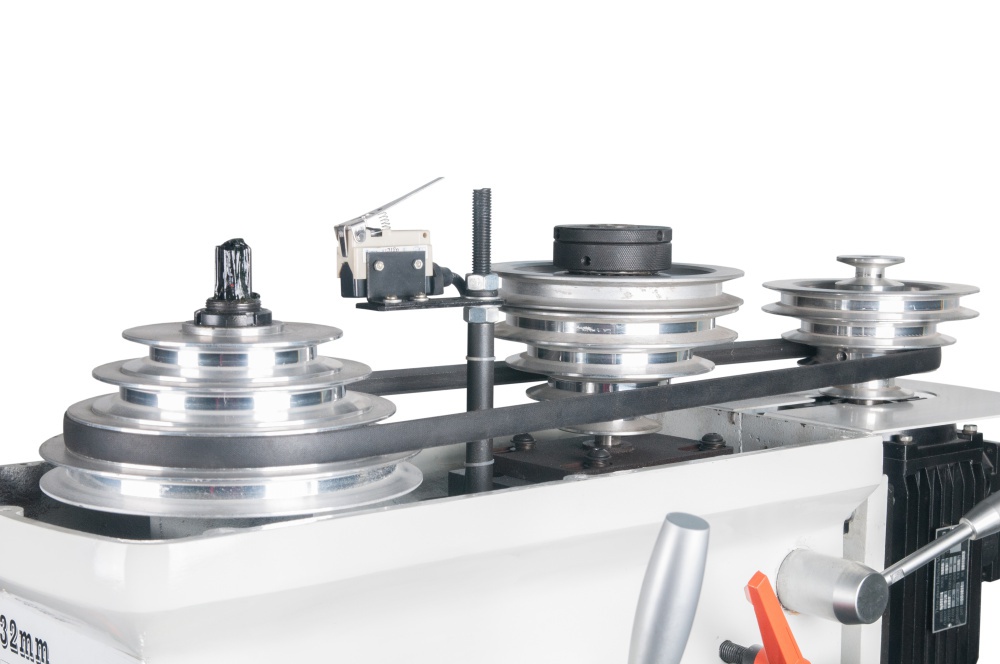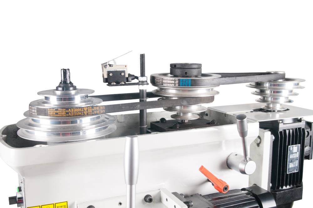 - Výška stolu se nastavuje velmi lehce pomocí ruční kliky a ozubeného hřebene na sloupu o pr. 100 mm.