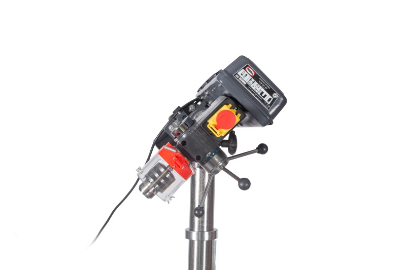 - Ano, u tohoto modelu je možné naklápět celý horní díl vrtačky pro vrtání pod úhlem.