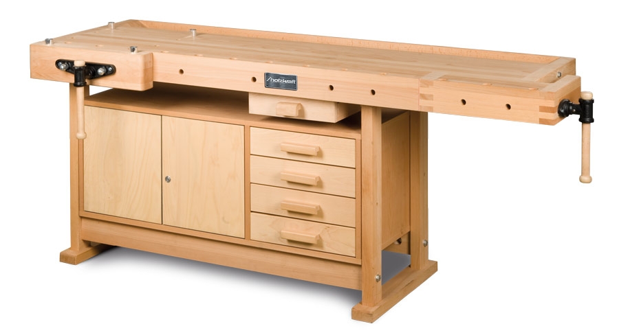 Model Holzkraft® HB 2010 je tradiční truhlářská hoblice v těžkém profesionálním provedení, která uspokojí i nejnáročnější řemeslníky. Stůl je vyroben z pečlivě vybraného bukového dřeva, které zaručuje vysokou odolnost a dlouhou životnost. Povrch je ošetřen speciálním olejem šetrným k životnímu prostředí, který dřevo chrání a zvýrazňuje jeho kresbu. Hoblice je vybavena dvěma typy vozíků: francouzským předním a německým zadním vozíkem, oba s trapézovým vřetenem pro lehký chod a přesné upnutí. Konstrukce je zpevněna cinkovým a rybinovým zaklížením v klíčových částech, což zajišťuje tvarovou stálost. Všechny hrany jsou zaoblené pro vyšší bezpečnost při práci.